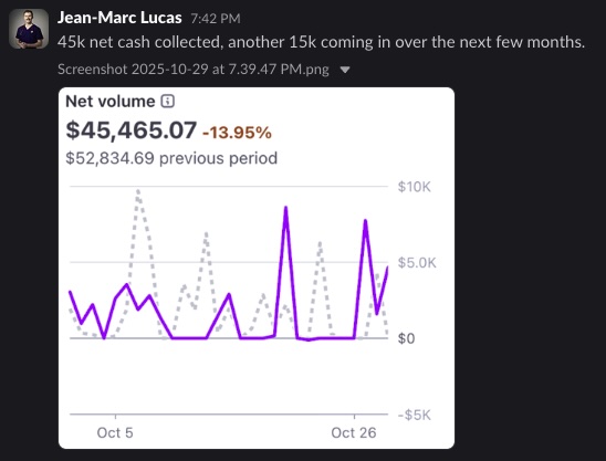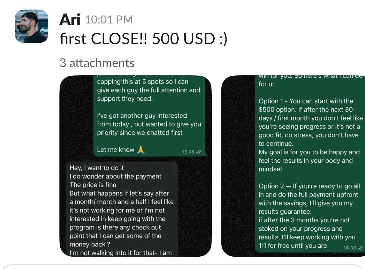 "First month: two low-ticket beta clients for momentum, then two high-ticket clients—$4,555 collected."